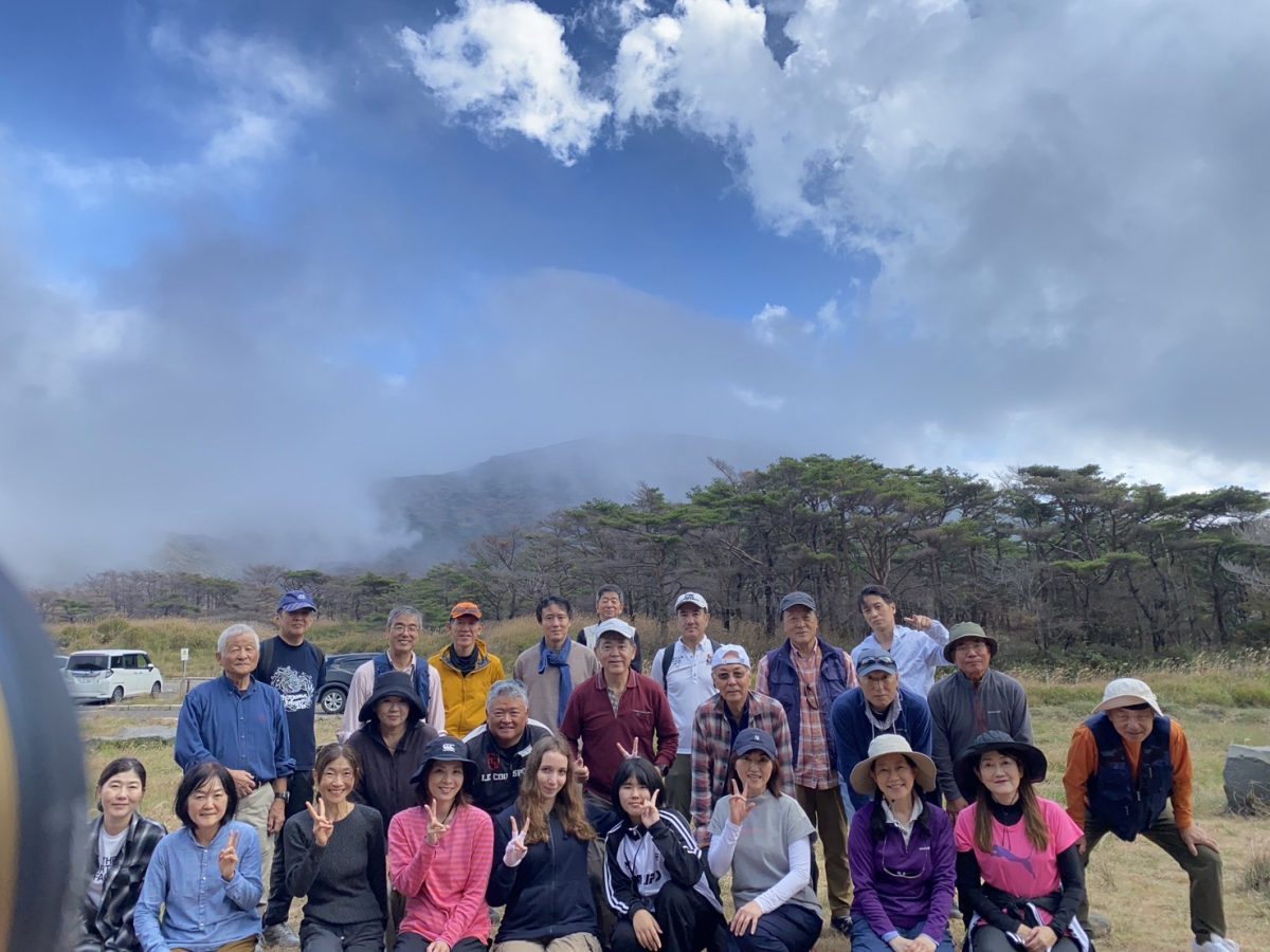 皆様から要望の多かったアウトドア・クラブが発足し、記念すべき第1回目の企画として2025年10月25日(土)に、『えびの高原・池巡りコース』が実施されました。久永会長を団長、前村親睦・交流部門長をリーダーに、事前の準備も入念にやって頂いた古木会員、山之氏会員にガイド役を務めて貰い、会員・ご家族総勢26名の参加者で美しい初秋の自然を楽しみ親睦も深まりました。